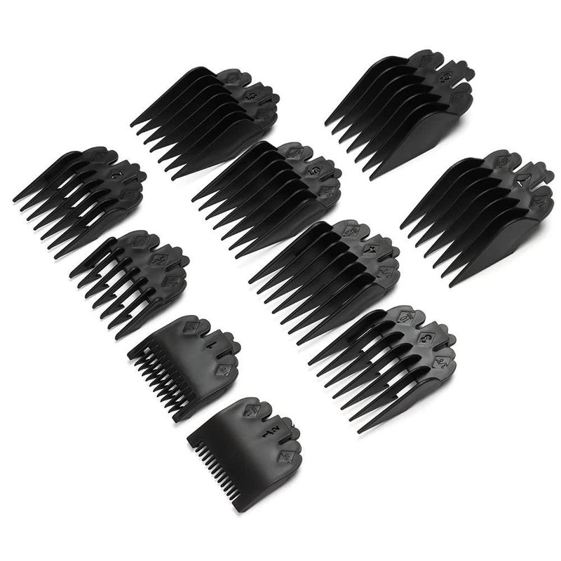 Get 10 combs, each with a different color and a different cutting length for a full range of options