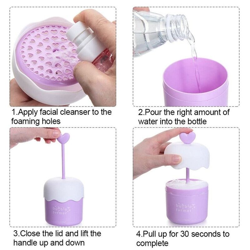 - The cute facial bubble maker creates micro-bubbles, producing a fluffiness that reduces friction and cleanses your skin deeply & more gently.The foam maker for face wash not only saves facial cleanser, but also provides fine lather for deep cleansing without straining the skin.
