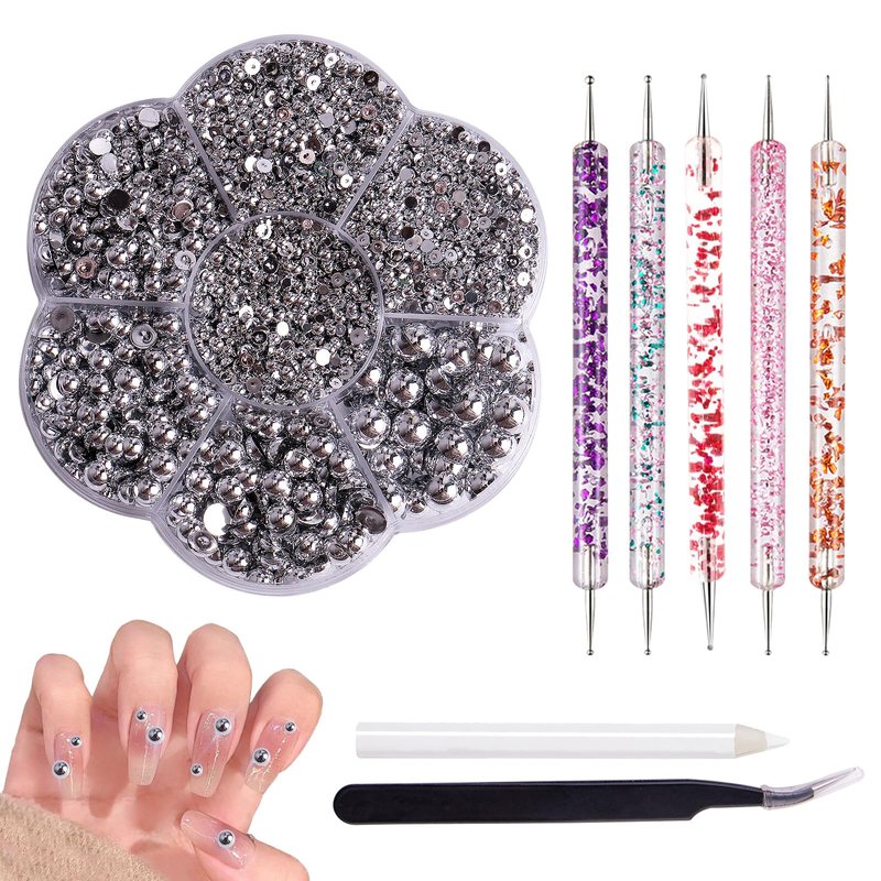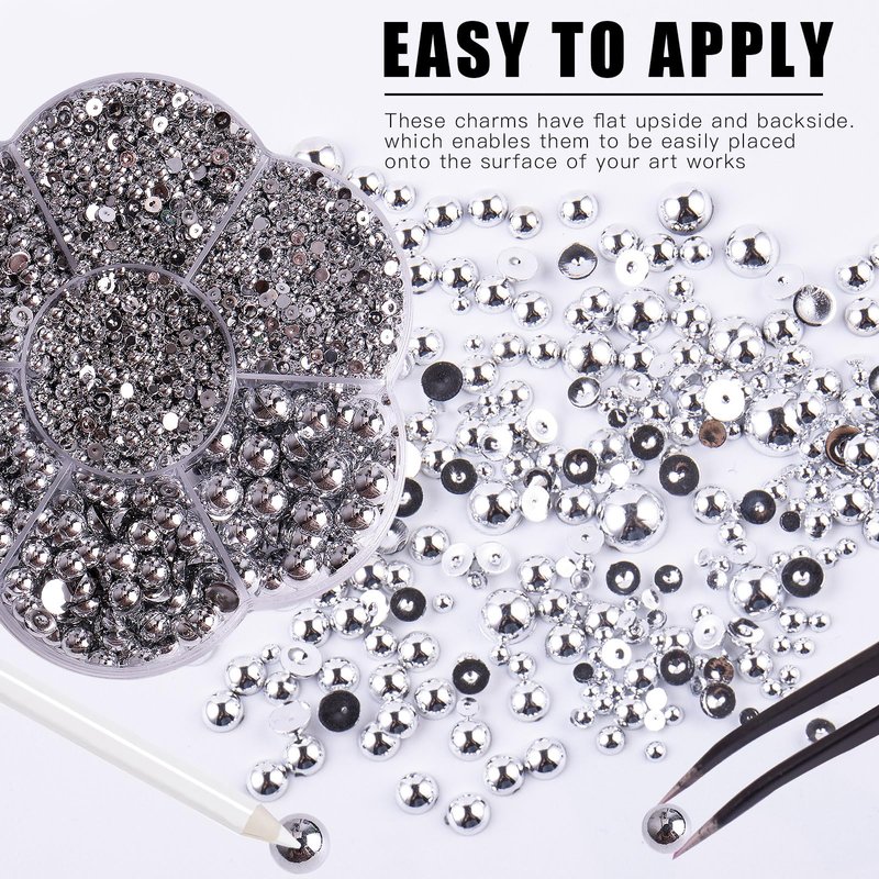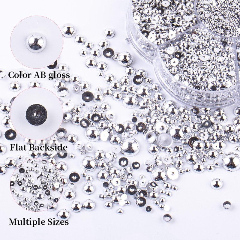 GOGIFTGO Face Gems White Rhinestones, 5606PCS Nail Art Flat Back Half Round Pearl Crafts, and DIY Projects - Perfect for Home DIY Nails Body Face Craft and Salon Use.(Silver)…