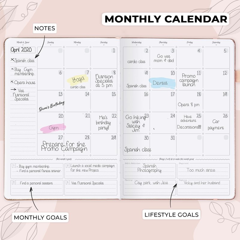 - PLAN YOUR MONTHLY & WEEKLY AGENDA – Manage your time effectively with spacious monthly calendars and weekly pages. Use convenient 6 AM-9 PM time slots to plan your daily schedule, set weekly priorities and work-life balance goals, track habits and to-dos.