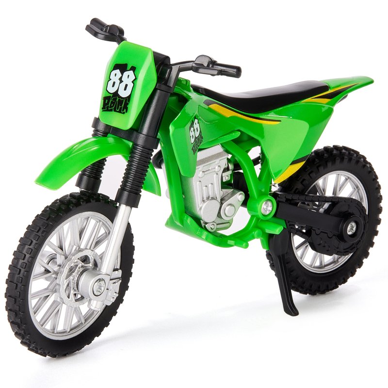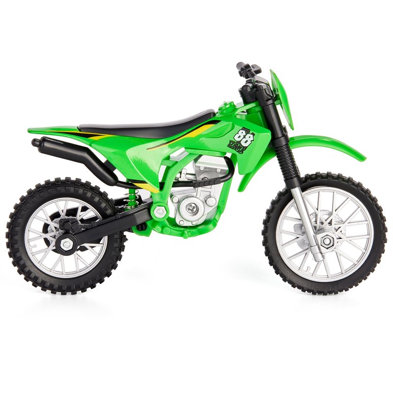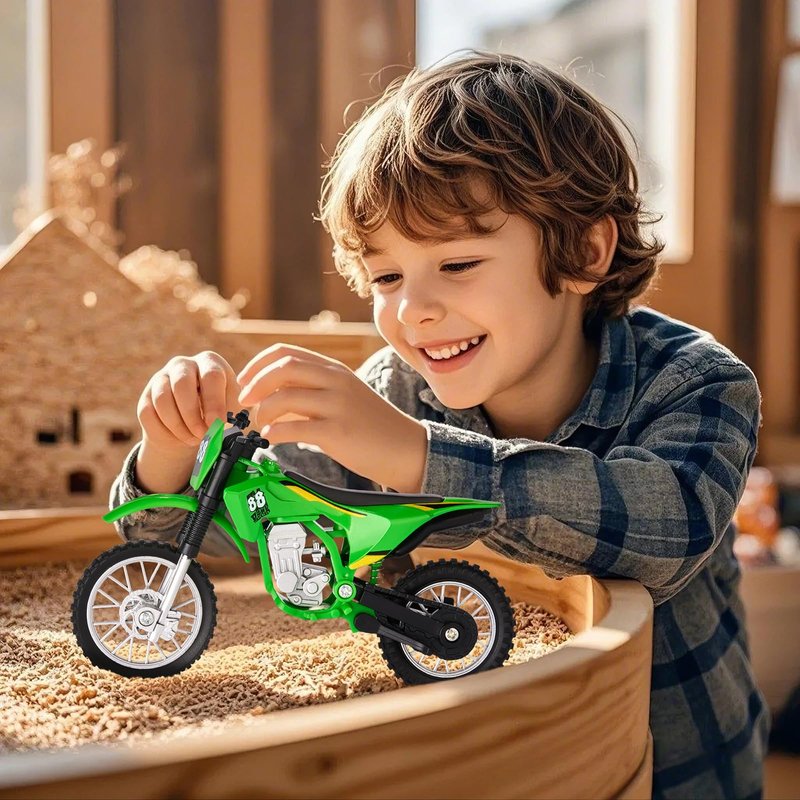 - [Easy and Stable] Our mini die-cast dirt bike is made of high quality plastic, the green appearance brings kids the speed and passion of recreate the scene