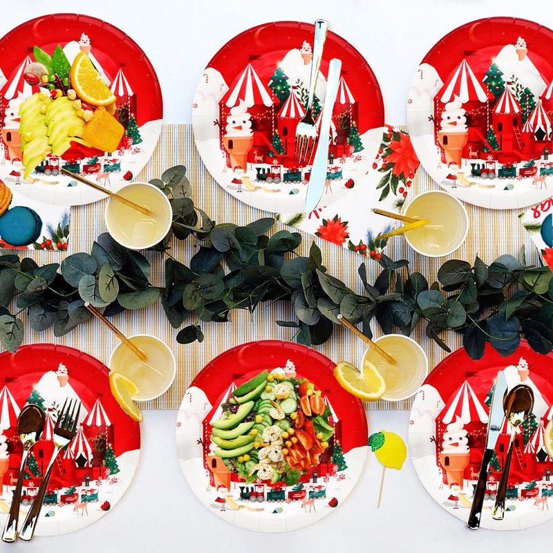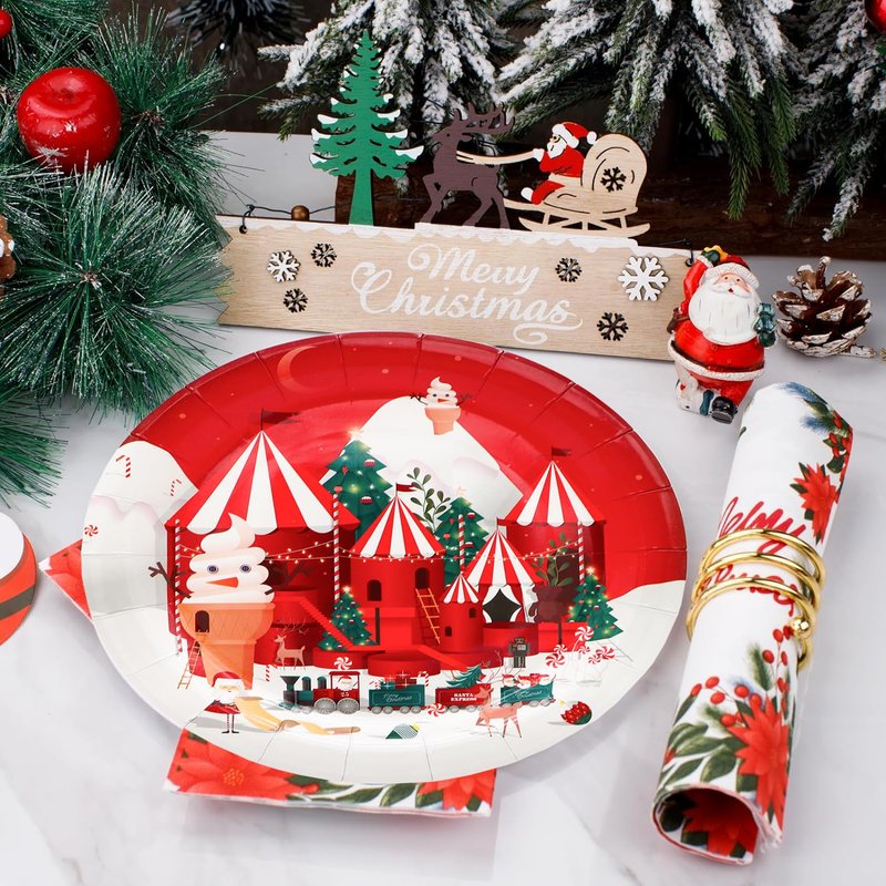 - 【QUICK AND EASY CLEAN UP】:These Christmas birthday party decorations can save clean up time,When you're done with the tableware,just throw away the food scraps along with the tableware,save your time,just spend motime enjoying your partyre!