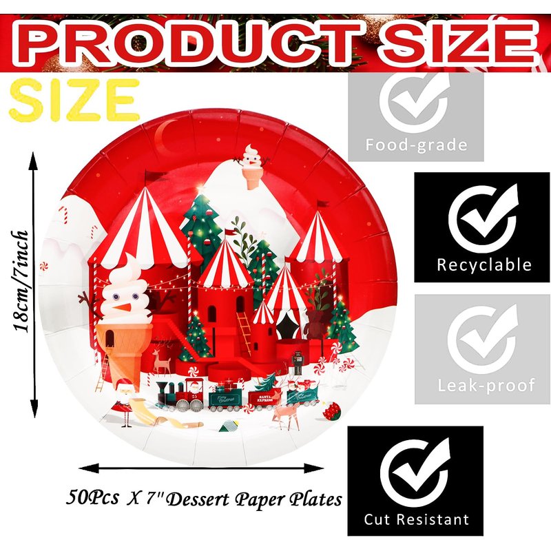 - 【Christmas Perfection Party Supplies,】:You will receive 50 7-inch christmas dessert paper plates,This christmas party tableware set is designed in a christmas tree perfect for a christmas birthday party.super cute for christmas themed birthday party decorations,each set can accommodate 50 people guest.
