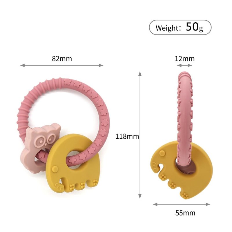 - Double the Fun: Each teether ring comes with two delightful and interactive toys attached, offering both teething relief and entertainment in one handy package.