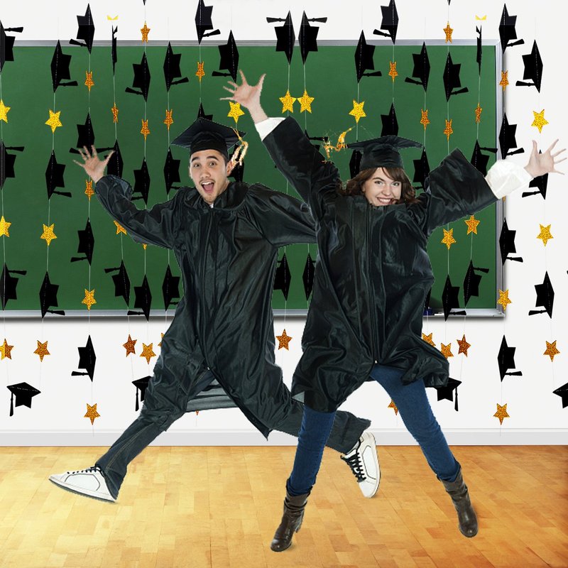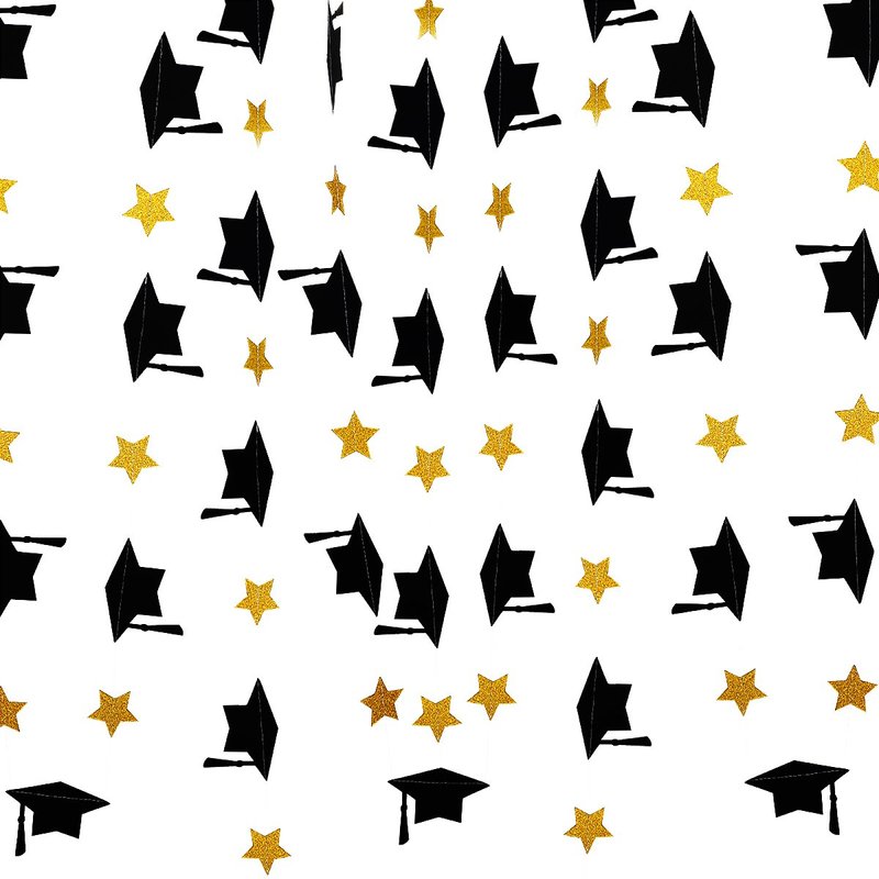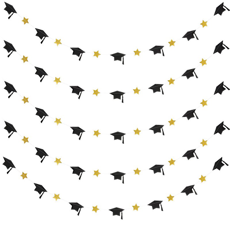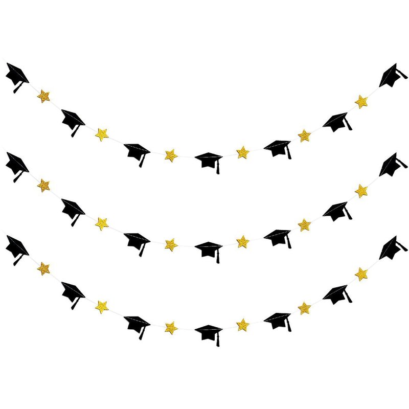 - 🎓🎓【What you will get】3Pcs black&gold graduation cap stars Garland, a string have 25pcs graduation cap and stars, the perfect graduation theme party decorations for you,enhancing the joyful atmosphere for your 2023 graduation.