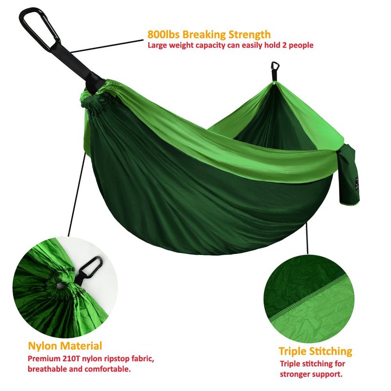 - ✔ Premium Quality - Built to last a lifetime, our durable camping hammocks are crafted with soft and strong premium parachute nylon and triple interlocking stitching, along with heavy duty carabiners and tree friendly hammock straps