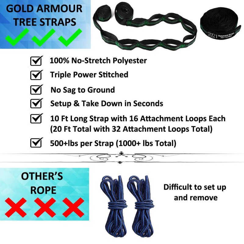 - ✔ Buy with Confidence - This is the best value camping accessories hammock, you can buy with confidence. Lifetime Warranty included by Gold Armour, a USA-based company