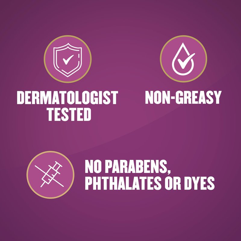 - Dermatologist-tested, nongreasy and free from parabens, phthalates, and dyes
