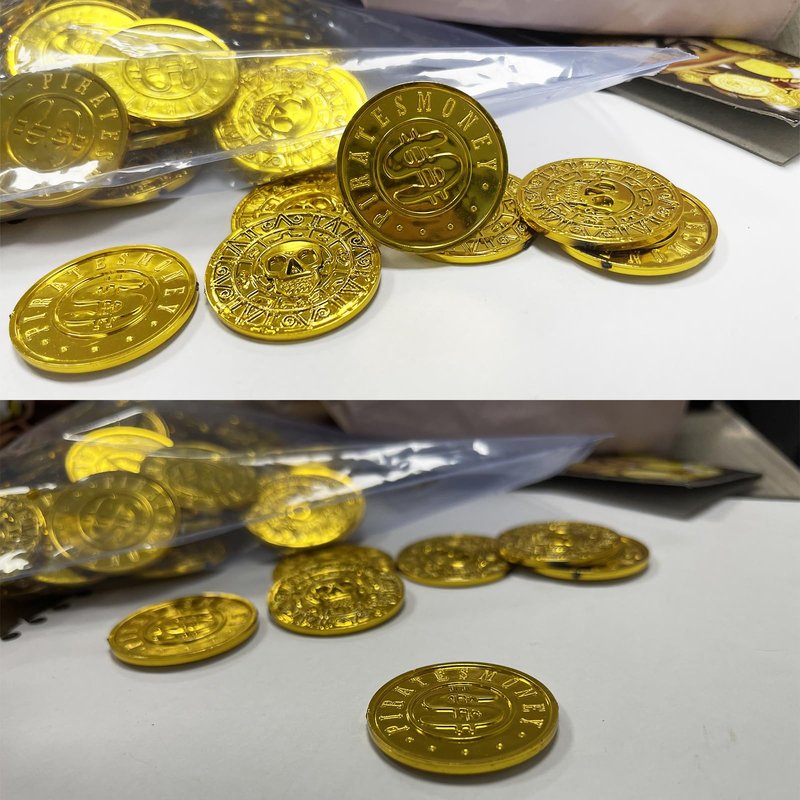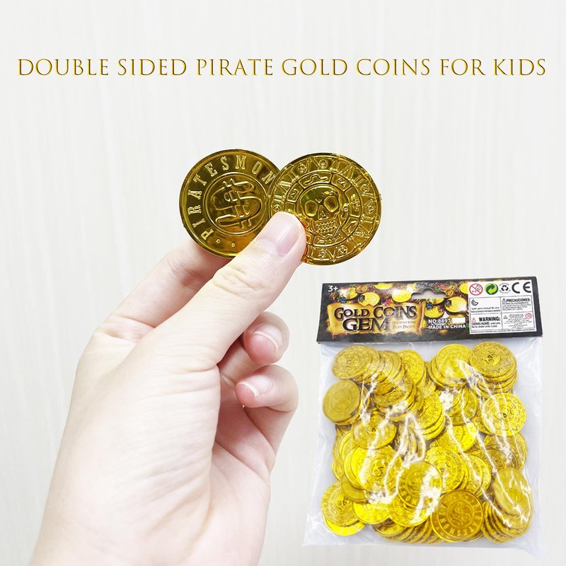 - 👉Pirate Gold Coins Package Includes:You will receive 100 pieces of pirate treasure hunt coins, Coins measures 1.38".Packed in transparent PVC polybag. For ages 3 and up.