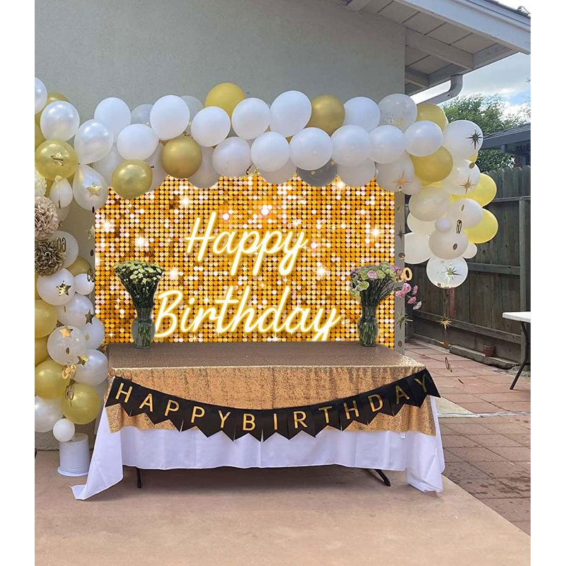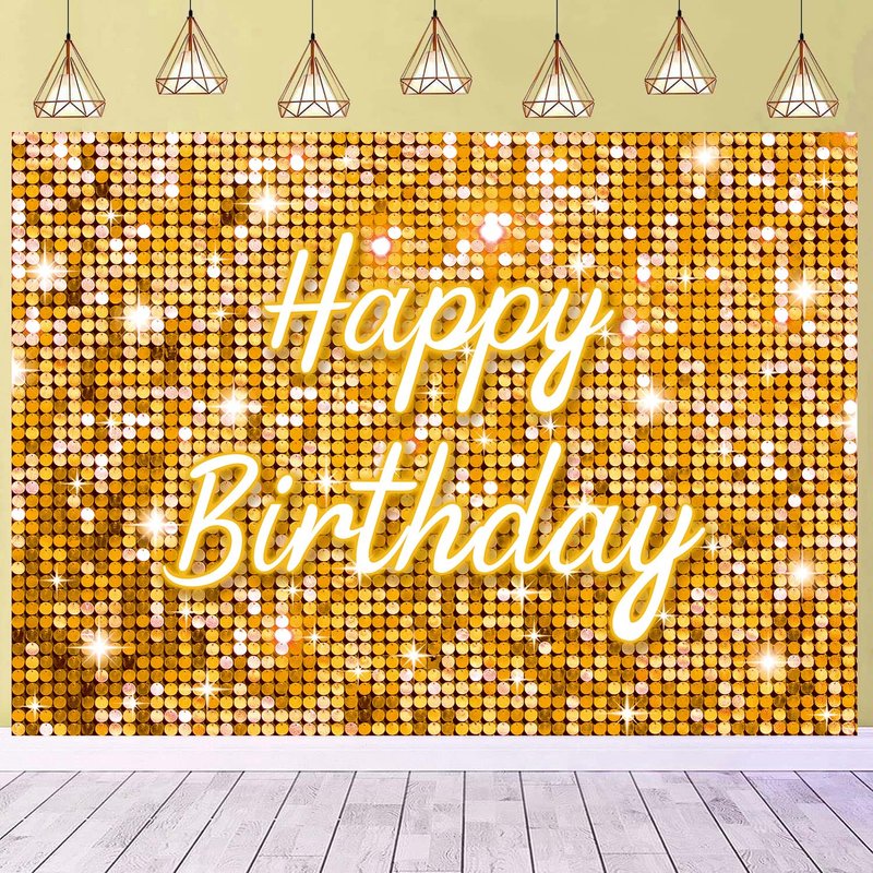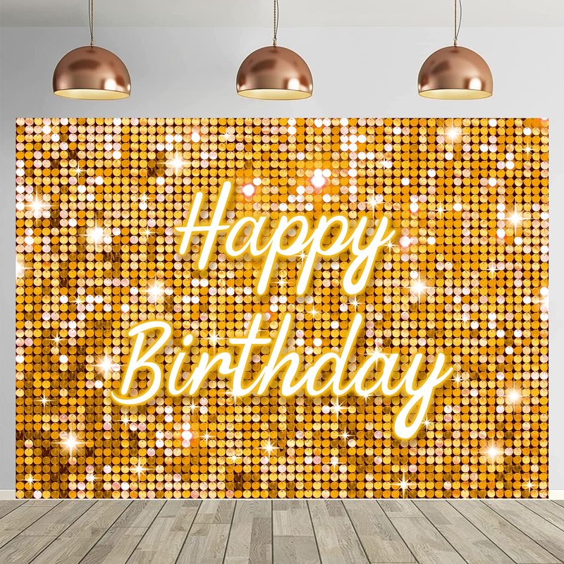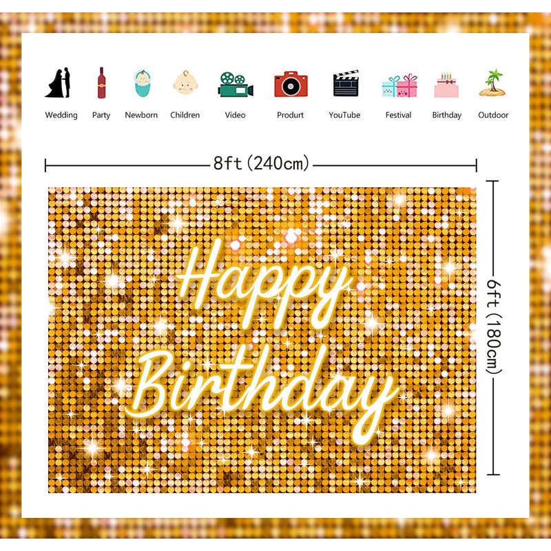 Gold Flash Square Wall Backdrop for Photography Golden Happy Birthday Glitter Sequin Shimmer Background Sweet 16 Girls Woman 20th 30th 40th Birthday Party Decorations Banner (Gold, 8X6FT(94X70inch))