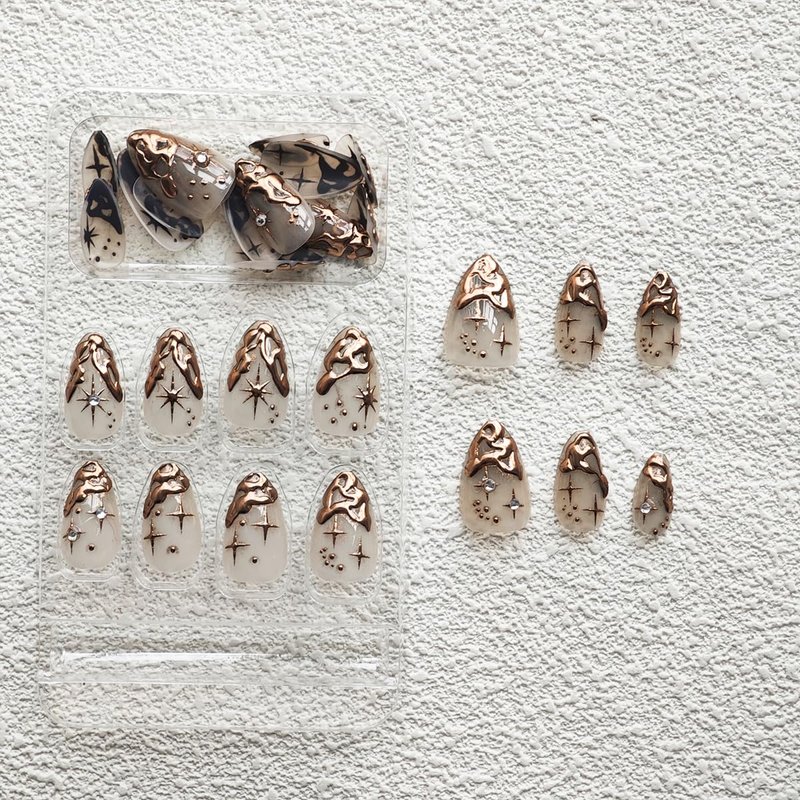 - Wide Application:The 3D gold irregularity chrome stick on nails are suitable for all kinds of social occasions and Holidays.It very suitable for parties,dates,dinner parties,Halloween,Christmas,Valentine's Day,prom, weddings.It must be your essential accessory.These nude glue on nails are also a beautiful present for your friends