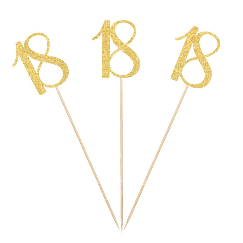 Gold Glitter 18th Birthday Centerpiece Sticks, 12-Pack Number 18 Table Topper Anniversary Party Decorations