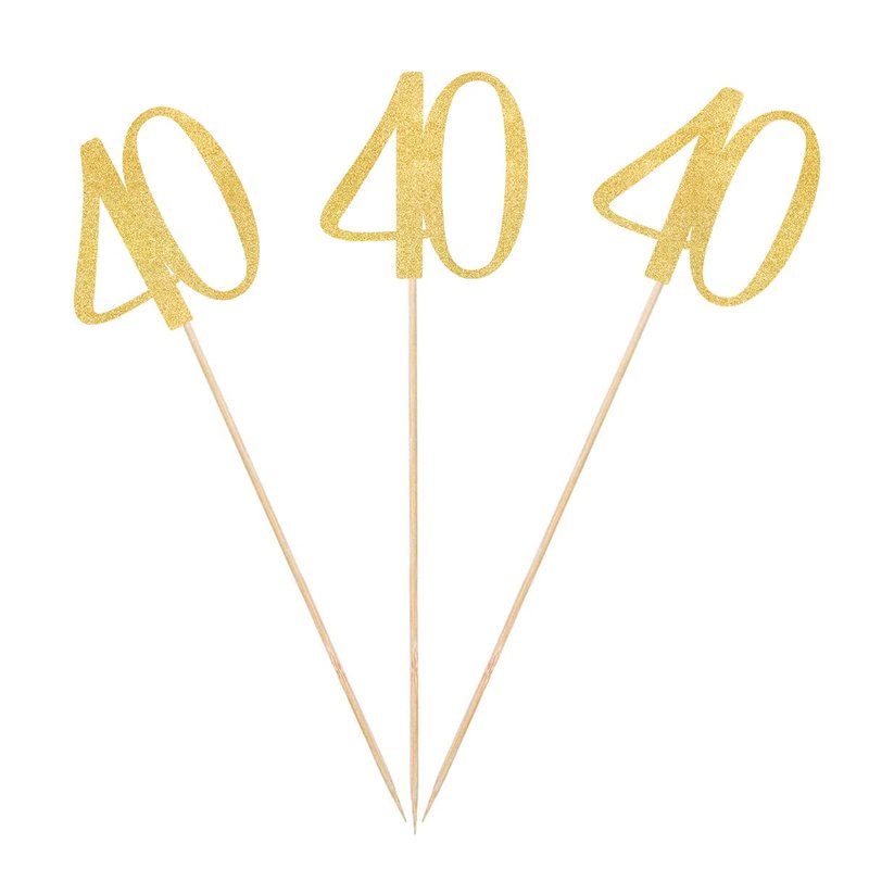 Gold Glitter 40th Birthday Centerpiece Sticks, 12-Pack Number 40 Table Topper Anniversary Party Decorations