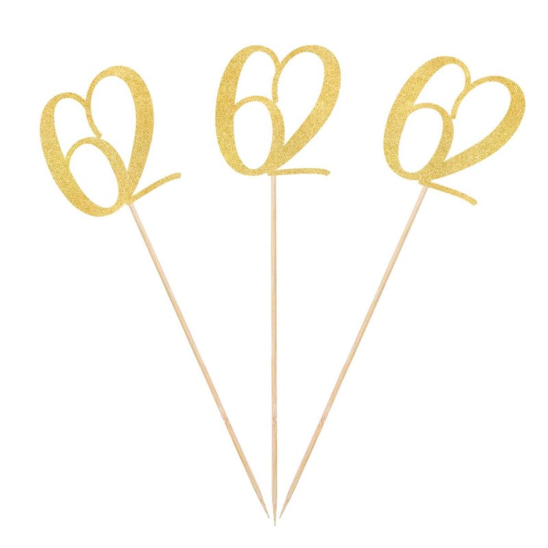 Gold Glitter 62nd Birthday Centerpiece Sticks, 12-Pack Number 62 Table Topper Anniversary Party Decorations