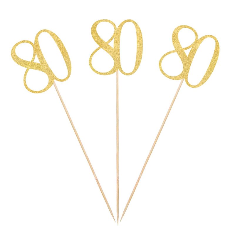 Gold Glitter 80th Birthday Centerpiece Sticks, 12-Pack Number 80 Table Topper Anniversary Party Decorations