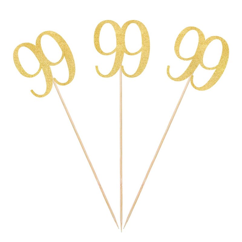 Gold Glitter 99th Birthday Centerpiece Sticks, 12-Pack Number 99 Table Topper Anniversary Party Decorations