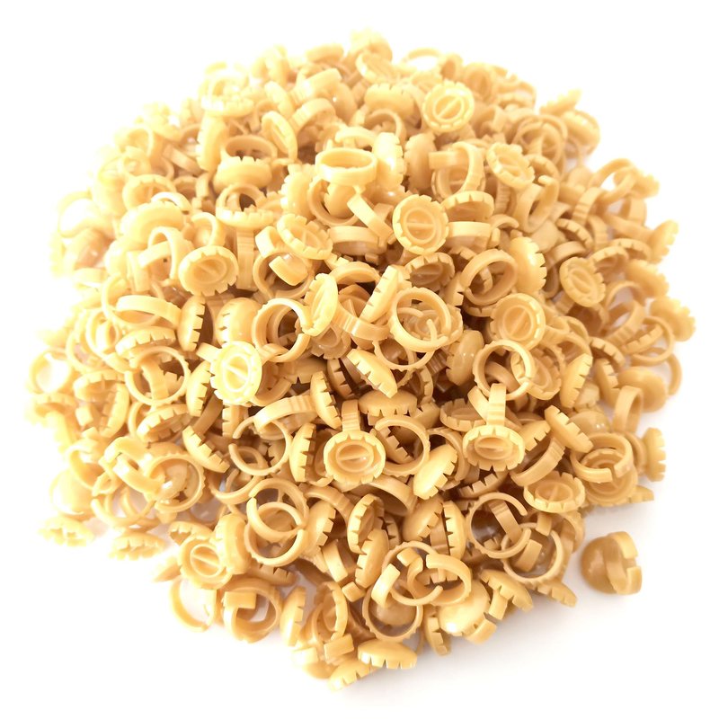 Not only smart glue rings but the gold flower glue ring also enable use for tattoos, ink, pigment, lipstick, nail art, etc. 300 PCS. The glue rings for eyelash extensions are great for volume fan lash extensions. adhesive rings for eyelash extensions can be used for both volume lashes and individual lashes. lash glue rings Specifications: Circle Glue Rings Material: High-quality plastic. Lash Glue Rings Color: Gold Eyelash Glue Rings Package: Bag packed with 300 PCS gold lash glue holder Round Glue Rings Size: the cup size is 0.6'' /1.6cm, eye lash glue holder inner diameter is 0.4'' / 1.0cm , and the finger round diameter is 0.9'' / 2.2cm Lash Rings Features: 1. Fast Fan Design:12 V-breaches can wipe extra glue for volume lashes and keep the roots bonded into one cluster. 2. No spilling: 2 glue holders can keep the glue from flowing out, extending the glue drying time and maintaining good performance. 3. Adjustable Ring Diameter: The ring diameter is soft and can be adjusted to fit most people. 4. Disposable: disposable, mini-sized, portable, easy, and convenient for professional beauty salons, cosmetology schools, individual eyelash extensions, and makeup artists. 5. Perfect for volume lashes: The V-shaped notches can help eyelash extension technicians quickly make volume fans and save application time. How to use volume glue ring? 1. Drop the glue into the cup; 2. Take eyelashes and dip them in the glue; 3. Place the eyelash roots in a v-shaped base; 4. Wipe excess glue off lash fans, you will easily get natural lashes. Volume Glue Ring Wide applications: The makeup ring caps can be used for eyelash extensions, nail polish, manicures, tattoos, eyebrow tattoos, eyeliner, etc. Can be applied to professional beauty salons, cosmetology schools