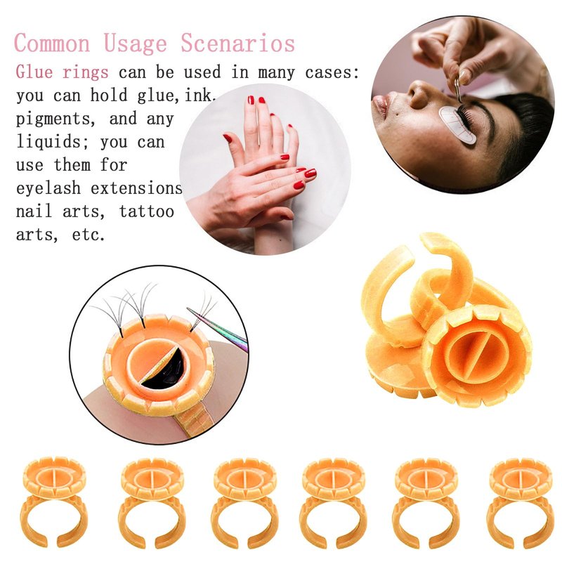 - Bulk Glue Rings Eco-Friendly Material: The circle eyelash extension glue ring is made up of high-quality plastic which is Durable Safe odorless and tasteless. these makeup glue rings are disposable, no mess to clean up. Lash glue holder perfectly suitable for professional beauty salons, cosmetology schools, individual lash tech, and make-up artists. A Must Have for Tattoos, Eyelash Extensions, Nail Art, Makeup, etc. Disposable, with no mess to clean up, making the eyelash application much easier.