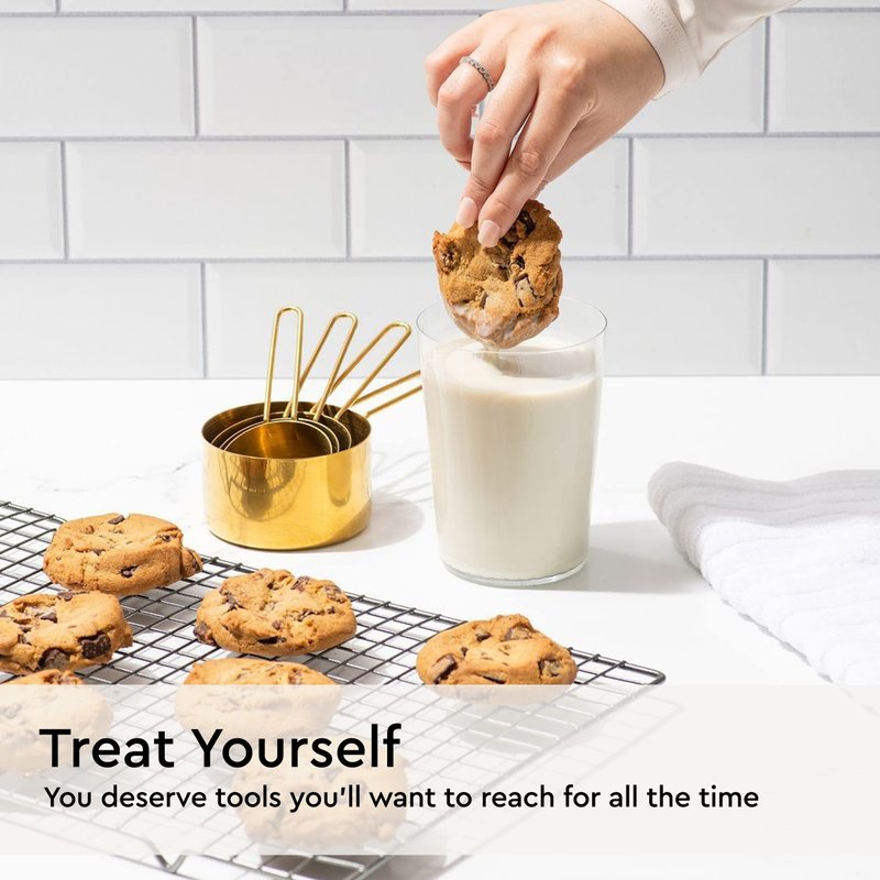 - ✔ GOLD IS THE NEW COPPER, BUT BETTER – Move over rose gold, adorn your kitchen with the elevated glam and allure of gold bakeware - outer brass / gold color mirror finish, inner brushed polish finish, now couple that with durability and function to make it stylish enough to leave out on the counter and ready for frequent use. Great addition to your gold kitchen accessories. A measuring cup set is a perfect kitchen gift for her or anyone looking for a baking gift set!