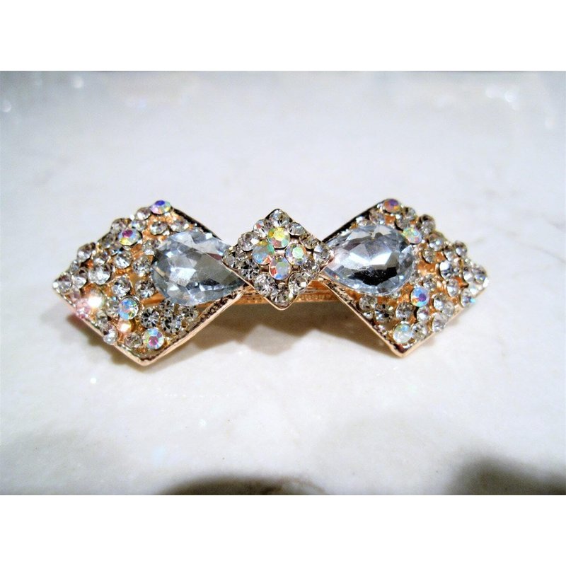 Gold or clear bow shaped crystal hair barrette clip bridal clip bridal barrette (Primary color: Clear)