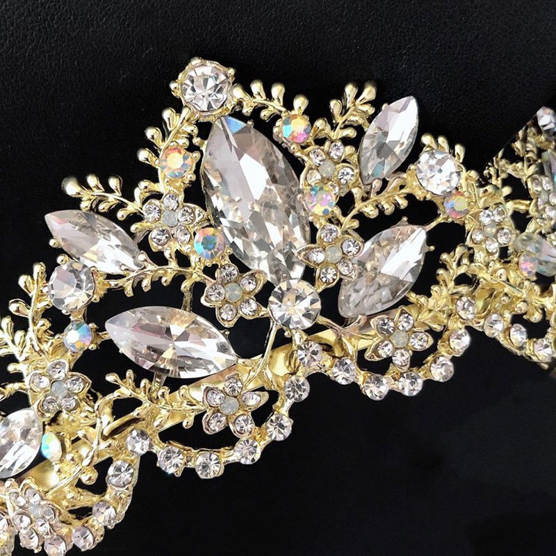 - ♔ Material: Made of high quality clear crystals in Gold-plated metal setting, eco-friendly,Alloy is with diamond look and hard texture for practicality and aesthetics.