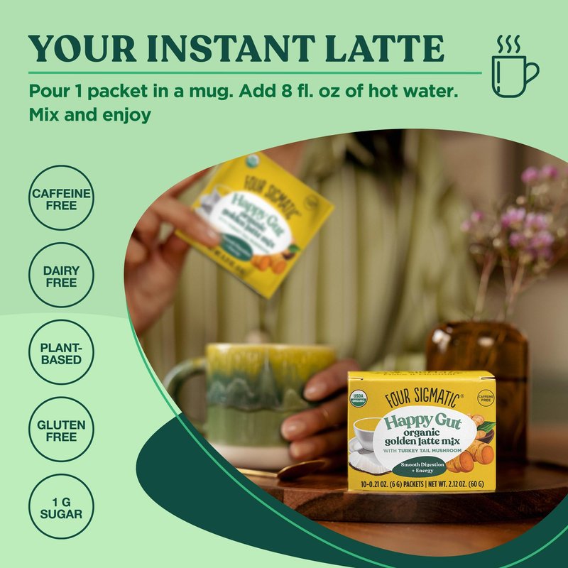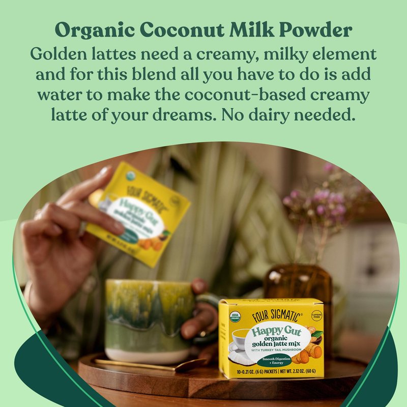 Golden Latte by Four Sigmatic | Organic Instant Golden Latte with Turkey Tail, Turmeric & Coconut Milk Powder | Supports Healthy Skin & Stress | Decaf & No Dairy | 10 Count