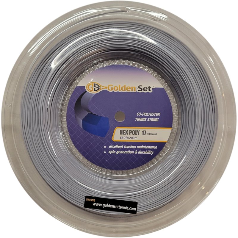 Golden Set Hex Poly 17g (1.23mm), Reel (660ft/200m), Polyester Tennis String (Silver)
