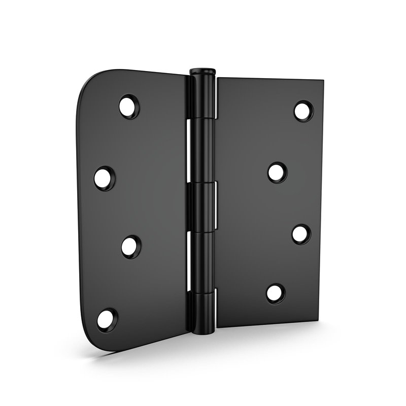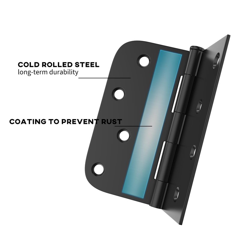 - Matte Black Finish - 4 inch x 4 inch, the round side is 5/8'' Radius Corners another side is square - We recommend you to apply 3 hinges for each exterior and interior door.