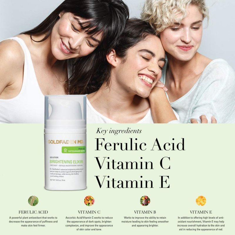 GOLDFADEN MD Brightening Elixir | Serum w/Vitamin C, Ferulic Acid, Vitamin B & Vitamin E | Helps Aid Against The Appearance Of Photoaging | Leaves Skin Feeling Hydrated & Looking Radiant .5 fl oz