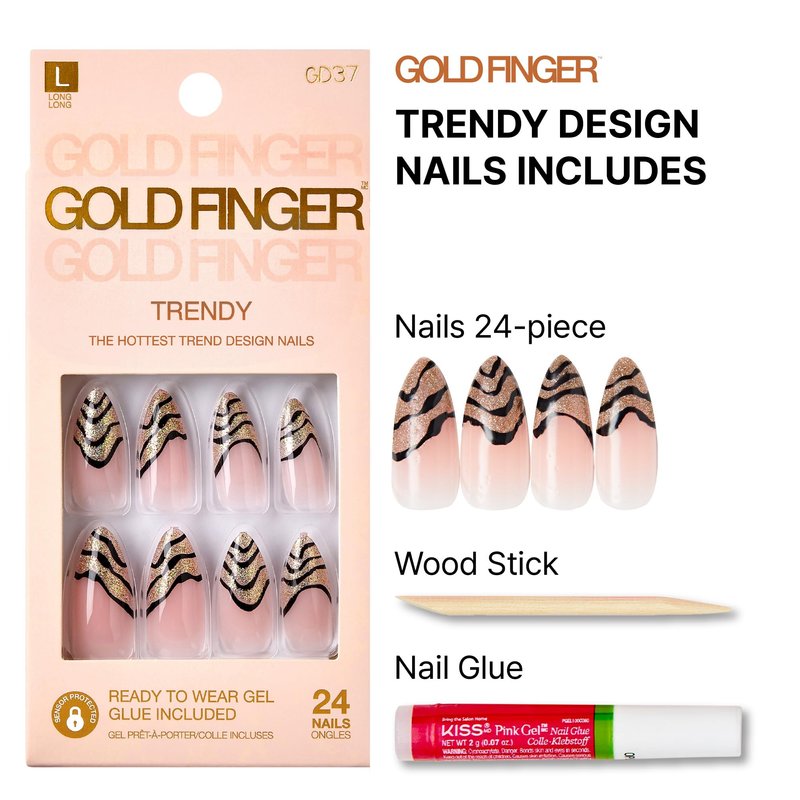 - 【GOLDFINGER CONVENIENT KIT】: The Kit includes Everyday Wearable Trendy color & designed nails, pink gel glue (2mL), and a manicure stick.