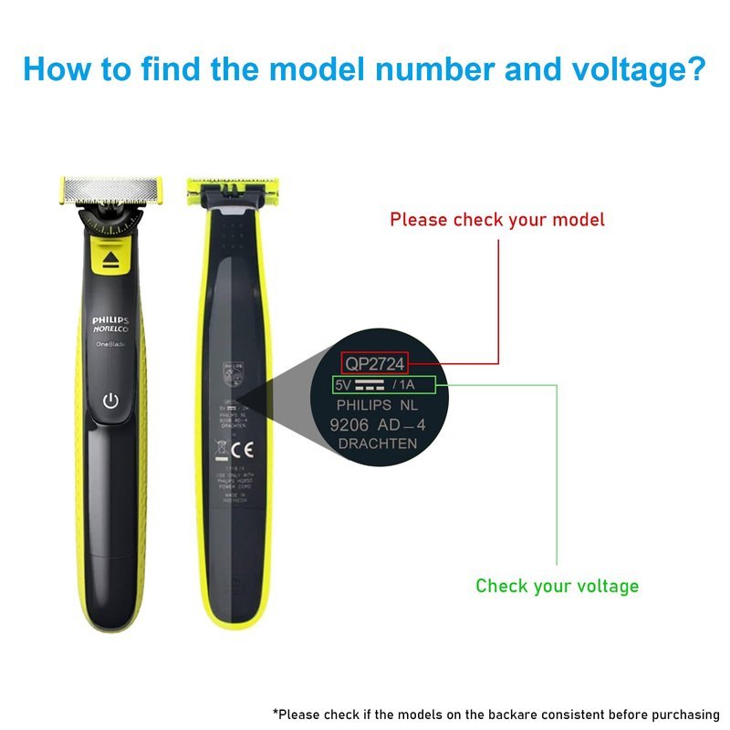 • 5V1A Shaver Charger: Compatible with Philips Norelco One Blade Latest Version QP2724/90, QP2834/70, MG9525/40, QP1324/20, QP1424/10, MG5910/49, QP1924/70, MG9510/60, QP4530/90, QP4631/90, QP6552/90, MG9520/50, MG9550/15, for One Blade 360 Face + Body Hybrid Electric Trimmer/Razor and Shaver (Not Applicable to Old Versions)