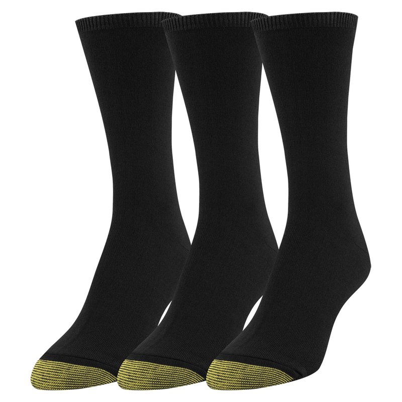 GOLDTOE Women's Castaway Crew Socks, 3-Pairs, Black, Medium