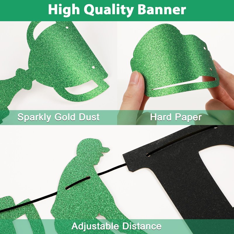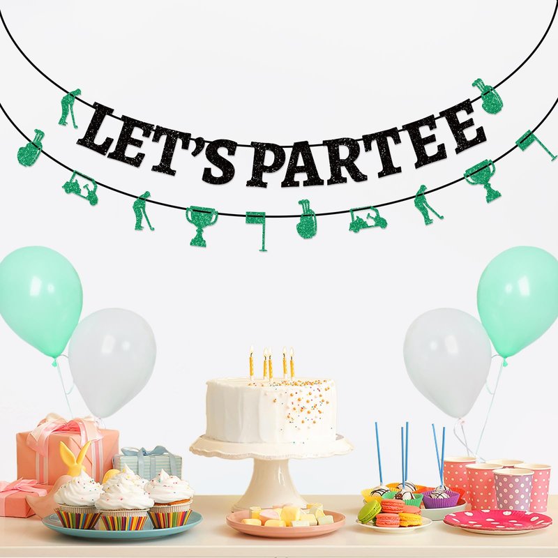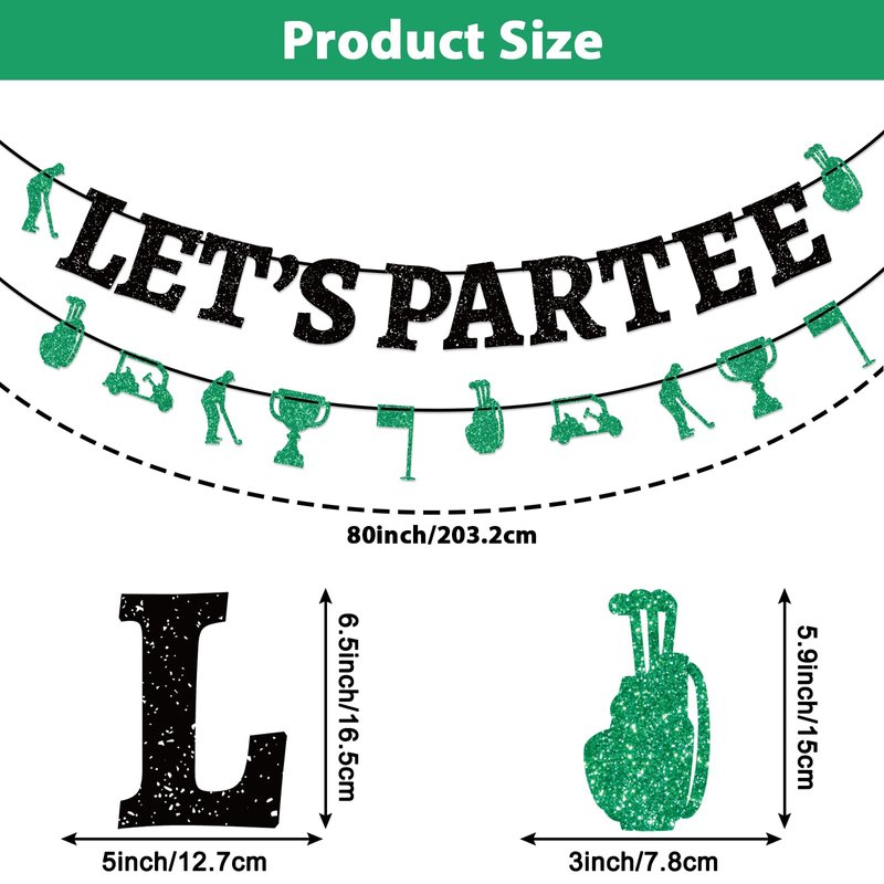 - 【Golf Party Decoration Banner】 You will have a shiny cool golf party banner decoration. The special word "LET'S PARTEE", the perfect combination of black and green, and the flash card material all make the golf banner look very striking and special. Decorating your golf-themed party with this banner is sure to make your party very special and lively.