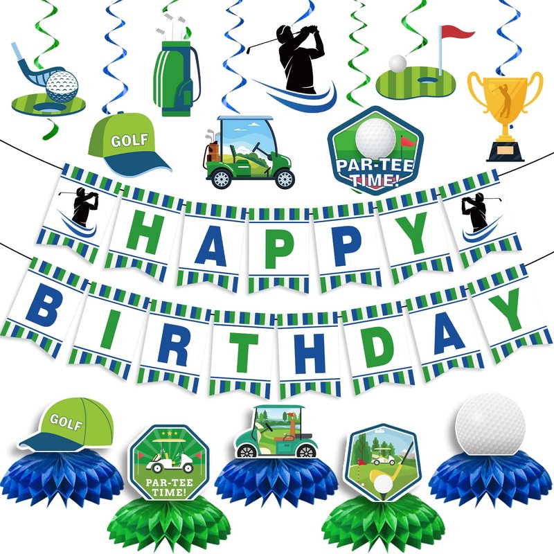 - 【Package Included】:Golf birthday party decorations includes 1pcs happy birthday banner and 9pcs golf card swirls with 9pcs golf ball hanging swirls and 5pc table decorations. With this comprehensive set, you can beautifully decorate your birthday with golf themed