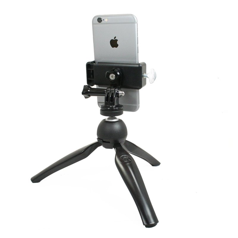 - WHAT'S INCLUDED - Folding Tripod, Phone holder clamp, tripod adapter, screw, screw adapter. This tripod doubles as a hand grip, so you can capture hand-held video footage too.