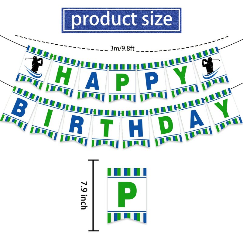 - 【GOLF THEME DESIGN】We chose the classical golf-themed colors(green, blue, white) to design “HAPPY BIRTHDAY” banner. These golf-themed party supplies feature common elements, such as golf bags, golf balls, golf carts, lawns, etc., suitable for golf lovers