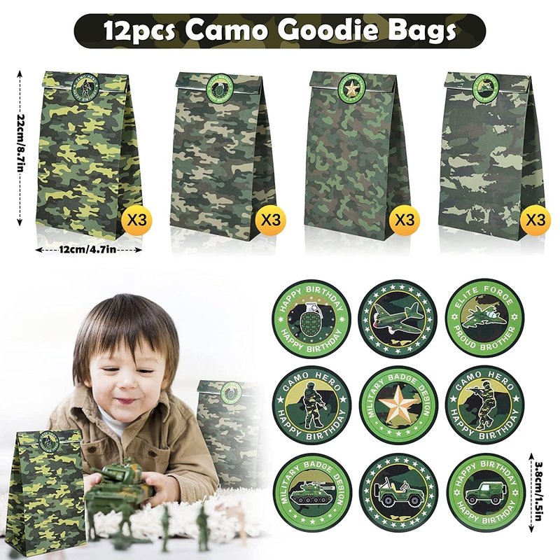 - CAMO DESIGN:These army birthday party decorations will make everyone scream. This camo party supplies set is enough to give you the necessities and immerse your guests in an unforgettable experience for great value