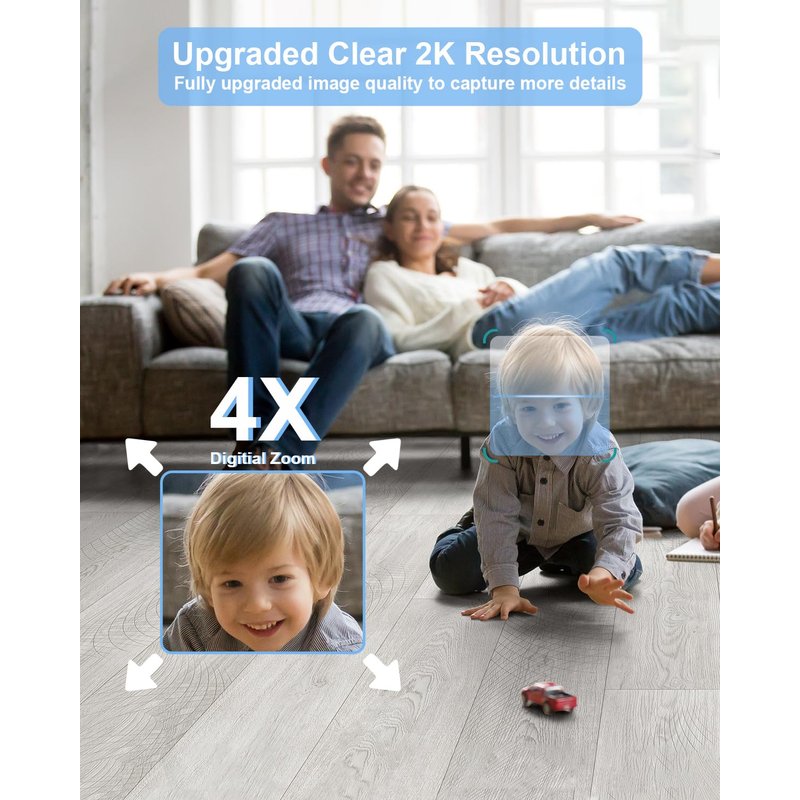 - 【Clear 2K Resolution&Pan/Tilt Function】--Keep your home secure with the Golspark security camera, which provides clear 2K resolution footage for crystal clear monitoring. The indoor pet camera can pan and tilt to provide a 360-degree view, allowing you to monitor every angle of your living room. Indoor security camera with 4X digital zoom function helps you to keep an eye on your pets, children, or any suspicious activities with ease.