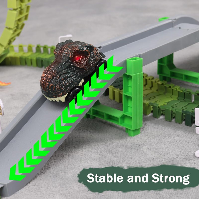 • 【 Easy To Assemble】The dinosaur race track pieces are dynamic and can twist left or right, which when the entire race track is pieced together, allows a lot of flexibility, and makes a new track layout for different variations.
