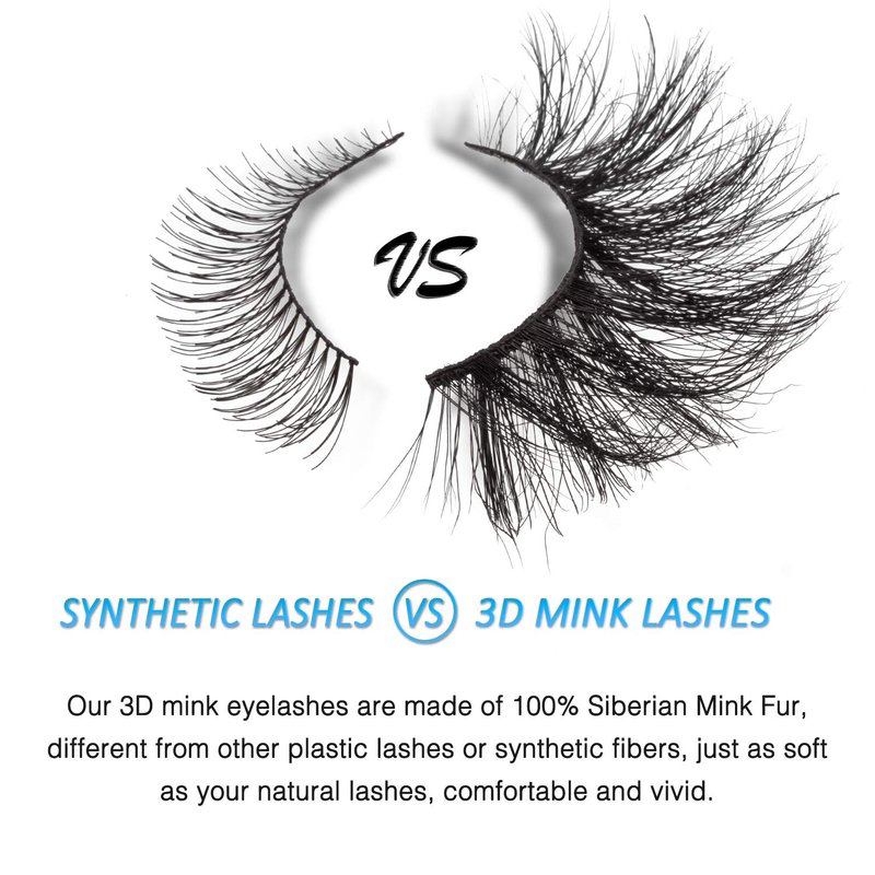 - 2.【Premium Mink Fur - Soft & Comfortable】 -- 100% siberian mink fur eyelashes. Real full strip mink eyelashes feel more comfortable than synthetic lashes. Dramatic soft, natural curved, like human natural lashes, but not irritate to your eyes.