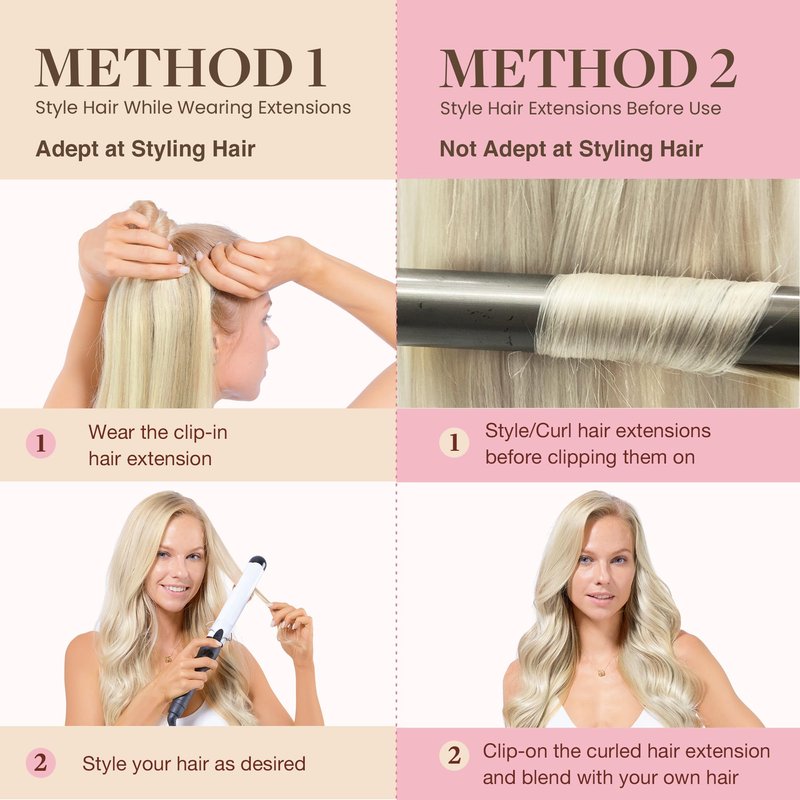 - Clip In Human Hair Care: Whether you're straightening, curling, or crafting your unique style, our extensions will keep up with your creativity while offering a soft and comfortable wear. For heated styling, keep below 250F. Brush gently from root to end, apply hair oil weekly, and keep your locks silky and soft.