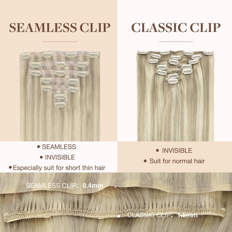- High-Quality Clips for Quick Wear: Our clip in extensions boast slim, silicone-backed clips for a barely-there feel, securely stitched and cushioned with gentle rubber to safeguard your scalp and hair. The PU design makes the seamless clip in hair extensions more invisible, comfortable, natural, and lighter. They're a breeze to self-apply and remove, perfect for effortlessly transforming your look for any event, from weddings to parties to date nights.