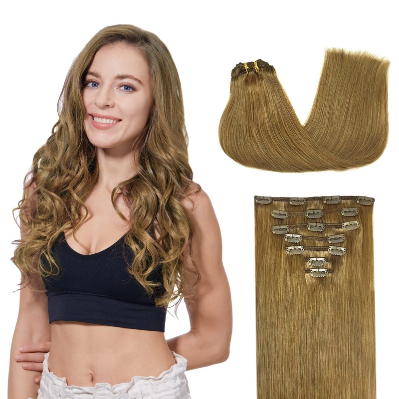 GOO GOO clip in hair extensions team design more fashion collection of premium colored clip in hair extensions for beauty girl/women to choose. Wish to give our customer beautiful and charming looking every day. Product descriptionHair material: 100% real human hair, can be washed, curled and dyed like your own hair. Hair extensions with clips: 7 pieces set 120g. 105g net weight for hair without clips, 120g for hair with clips. One set for thick hair, two sets for thin hair. If you want add length and volume, we recommend you can choose 2 sets. Hair sets: 1 x 8" wide weft 4 clips attached, 2 x 6" wide weft 3 clips attached, 2 x 4" wide weft 2 clip attached, 2*2" wide weft with 1 clips.Length: 14-24inches.Texture: silk straight, can be curly waved.Hair dye and curl: Choose the color similar to your hair, can dyed to matched perfectly. It will keep the hair super condition with suitable hair care. And can be curled to any beautiful hairstyle you want. Warm hair care tips1. Hair color: Real product picture. When you choose color, according your hair root color. Make a balayage ombre hairstyle, it will be gorgeous and amazing. Maybe due to lighting effects, monitor's brightness/contrast settings etc, there could be a little slight or dark. 2. Hair Dying: Do promise 100% real human hair extensions clip in, so it can be treated and styled like your own hair . We do not suggest dyeing it colorful or lighter color. If you have other questions, please go to the professional salon or contact us before you do this. Customer service: If you have any problem, please feel free to contact us, we will help you to solve asap.