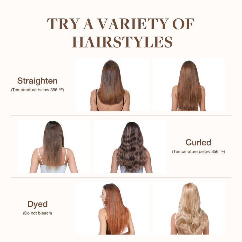 - Clip In Human Hair Care: Whether you're straightening, curling, or crafting your unique style, our extensions will keep up with your creativity while offering a soft and comfortable wear. For heated styling, keep below 250F. Brush gently from root to end, apply hair oil weekly, and keep your locks silky and soft.