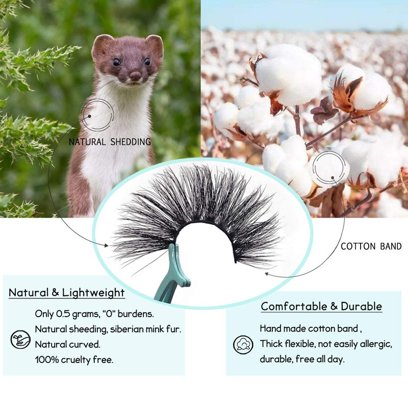 - 4.【Only 0.5g - Light Weight】 -- Each pair of our 3D mink false eyelashes only weighs 0.5 grams. Lightweight "0" burdens, no heavy feeling. You will not even feel their exist on your eyes. Cruelty-free Mink fur. These fine fibers come from the tails of artificial breeding minks' natural falling hair and are sanitized and dyed before they're packaged as easy-to-install eyelashes.