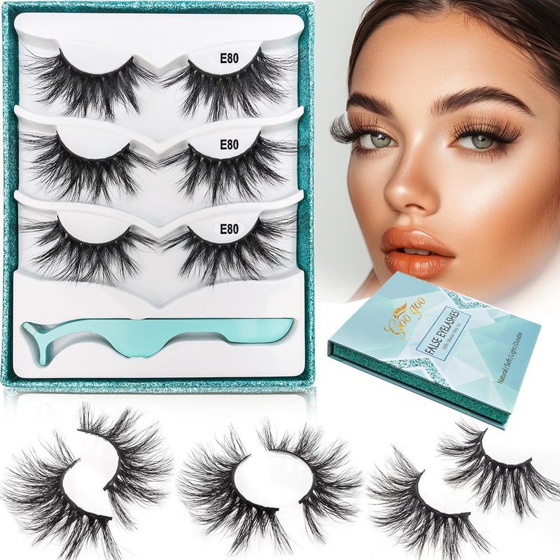 GOO GOO Eyelashes 3D Mink Fur, Fake Lashes 25mm Dramatic Long 1 Style 3 Pairs/set Natural Siberian False Eyelashes Hand Made Strips Lashes Fluffy Full Reusable Mink Eyelashes