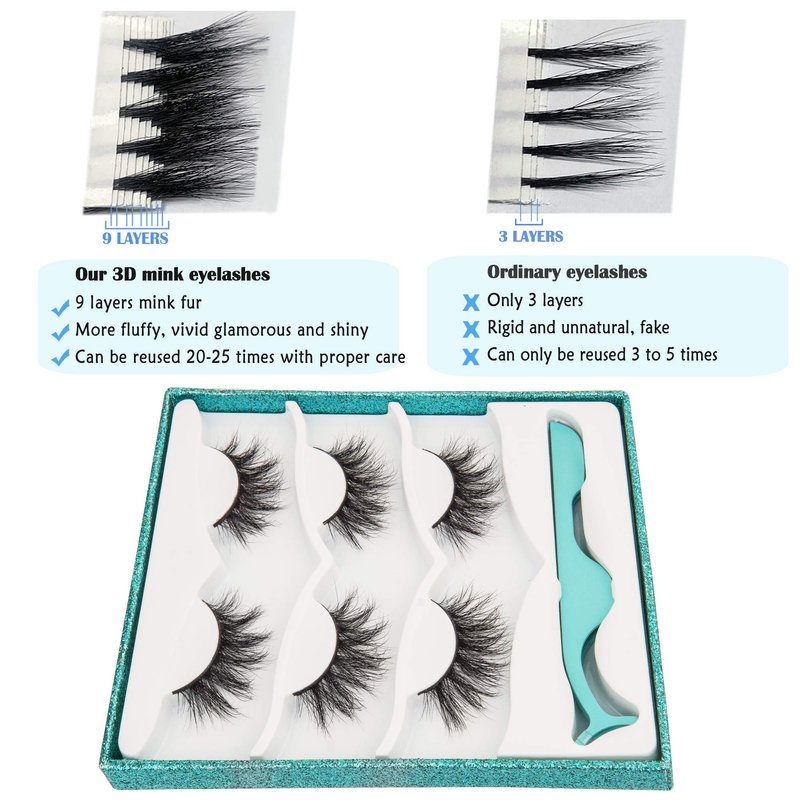 - 4.【Only 0.5g - Light Weight】 -- Each pair of our 3D mink false eyelashes only weighs 0.5 grams. Lightweight "0" burdens, no heavy feeling. You will not even feel their exist on your eyes. Cruelty-free Mink fur. These fine fibers come from the tails of artificial breeding minks' natural falling hair and are sanitized and dyed before they're packaged as easy-to-install eyelashes.
