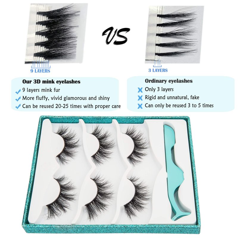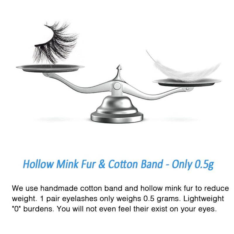- 4.【Only 0.5g - Light Weight】 -- Each pair of our 3D mink false eyelashes only weighs 0.5 grams. Lightweight "0" burdens, no heavy feeling. You will not even feel their exist on your eyes. Cruelty-free Mink fur. These fine fibers come from the tails of artificial breeding minks' natural falling hair and are sanitized and dyed before they're packaged as easy-to-install eyelashes.