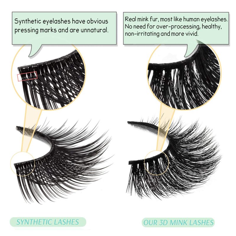 - 2.【Premium Mink Fur - Soft & Comfortable】 -- 100% siberian mink eyelashes. Real full strip mink lashes feel more comfortable than synthetic lashes. Natural soft, curved, hypoallergenic, like human natural lashes, but not irritate to your eyes.