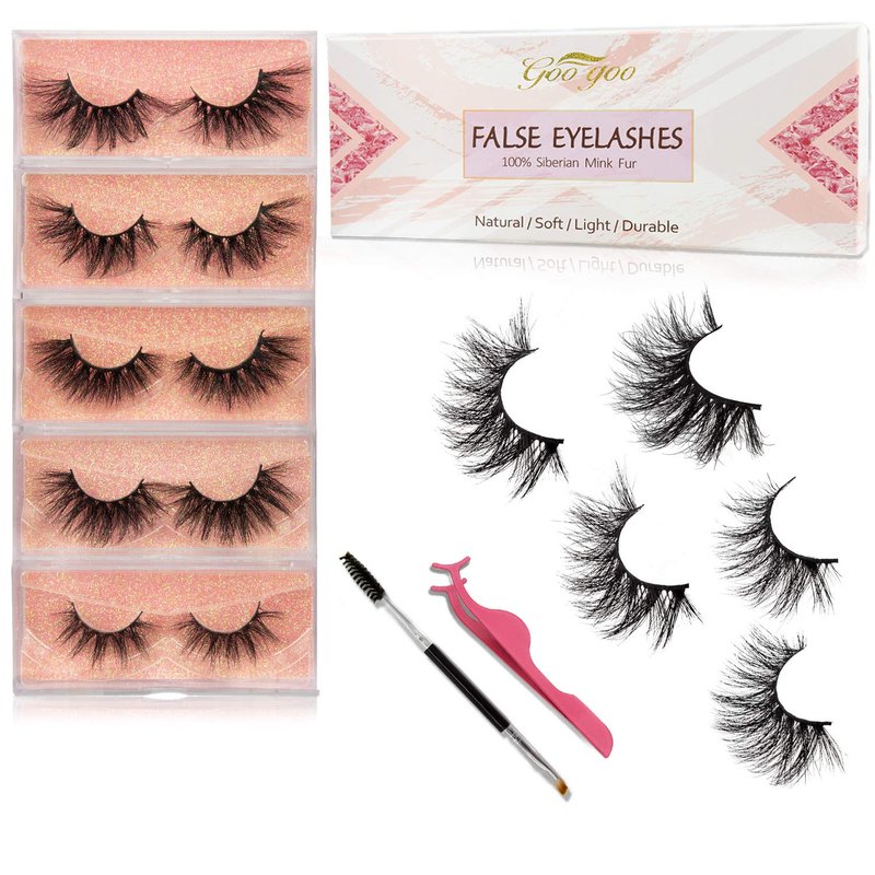 GOO GOO 3D mink eyelashes team design more fashion natural soft false eyelashes for beauty girl/women to choose. Wish to give our customer beautiful and charming looking every day. Product descriptionFur material: 100% siberian mink fur. full strip mink lashes, vivid and soft. Use times: Can be reused 20-25 times with good care. Always handle the lash from the band avoiding grabbing the lash fibers. Suitable place: This lashes style is perfect for daily wear, professional application like Wedding Event &Photo shoot & dating night or a girls night & graduation & birthday party. Package: 5 different pairs of strip mink lashes give you more experience. How to use and remove: Ues the eyelashes: 1. Remove the false eyelashes, and trim it to fit your eye length.2. Use both hands to adjust the false eyelashes to fit your eye curve.3. Carefully apply the glue to the main stem of the false eyelashes.4. Wait a few minutes for the glue to dry until the glue is almost transparent. This is the ideal time to apply lashes to eyelids.5. Close the eyes as appropriate and ensure a proper fit by blinking. 6. See the perfect and shining eyes.Remove the eyelashes:Dip in with cotton buds in discharge makeup fluid, in false eyelash glue it wiped gently let loose, false eyelash will gently remove eyelash from eye end, to remove eyelash glue, fingers will pave eyelash, put it in a box.